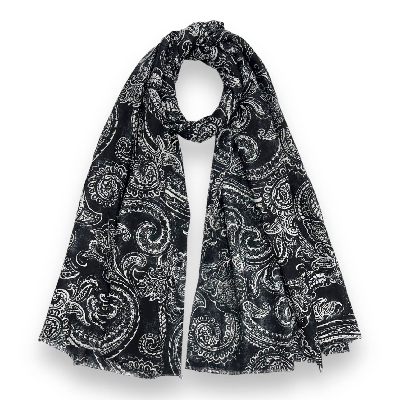Et elegant skjerf med klassisk paisley-mønster, laget i et medium tungt materiale som gir et mykt og vakkert fall. Skjerfet har en ren og enkel avslutning uten frynser, noe som gir et tidløst og raffinert uttrykk. Perfekt både til hverdags og som et stilfullt tilbehør året rundt.